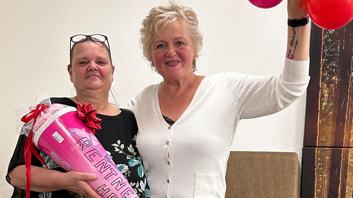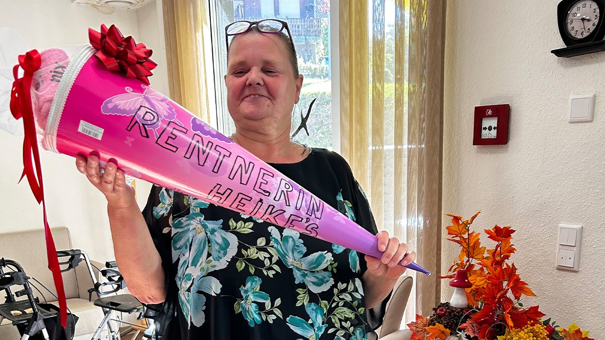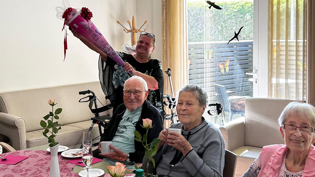 Bei einem geselligen Beisammen kommen nahm das „Haus in den Auen“ Abschied von einer geliebten Pflegekraft. Heike Beiell ging in den wohlverdienten Ruhestand, nachdem sie mehrere Jahre für gute Laune im Haus sorgte. Sie führte gerne lange Gespräche mit den Bewohner*innen und sorgte stets für Gelächter. Mit einem lachenden und einem weinenden Auge verabschiedeten Bewohner*innen wie Mitarbeiter*innen die treue Kollegin bei Kaffee und Kuchen. Als kleine Aufmerksamkeit wurde eine Überraschung im Stil einer Schultüte speziell mit allerlei Wohltuendem für einen ausgelassenen Rentenalltag gefüllt.