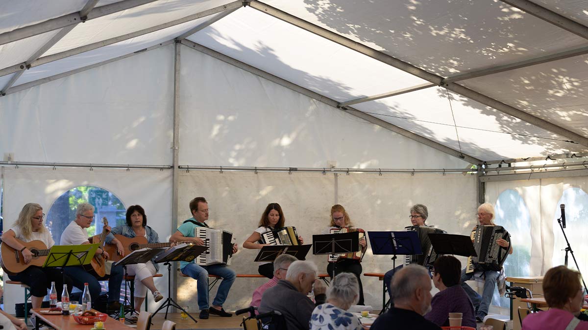 Im „Haus am Brühlpark“ gab es mal wieder einen ganz besonderen Anlass zum Anstoßen. Denn die Einrichtung in Schrozberg durfte in diesem Jahr bereits ihr 25-jähriges Jubiläum feiern. An Attraktionen und Unterhaltung wurde an diesem Tag jedenfalls nicht gespart. So gab es viele schöne musikalische Darbietungen sowie einen tollen Flohmarkt auf dem Gelände, über den die Besucher*innen flanieren konnten. Bei blauem Himmel machte sich unter den feiernden Kolleg*innen, Bewohner*innen, Angehörigen und weiteren Gästen eine hervorragende Stimmung breit. Und diese wurde dann nochmal durch das leckere Essen vom Grill und süßer Eiscreme gesteigert. All das trug zu einem besonders gelungenen Beisammensein bei, während dem gemeinsam auf ein Vierteljahrhundert „Haus am Brühlpark“ zurückgeblickt wurde.