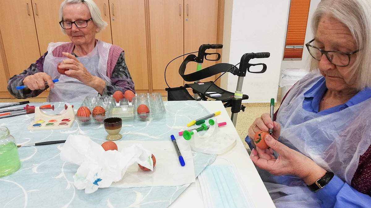 Natürlich müssen für Ostern auch bunte, selbstbemalte Eier ins Nest! Deshalb gestalteten die Mitarbeiter*innen des Betreuungsdienstes der „Wehrle-Werk-Stiftung“ mit den Bewohner*innen des „Haus St. Katharina“ in Endingen wunderschöne Kunst auf Eiern. Ob grafische Muster oder Blümchen – hier findet alles seinen Platz und das farbenfrohe Ergebnis kann sich wirklich sehen lassen!