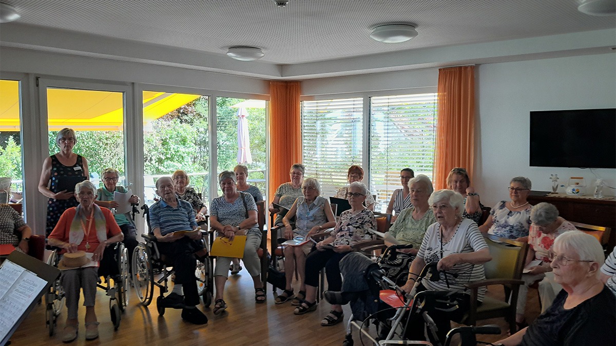 Zusammen mit dem Fürther Frauenchor „Gesangsverein Liederkrank Fürth“ startetete das „Haus am Mühlenweg“ ein ganz besonderes Projekt. Mit den Bewohner*innen des Hauses wurde an mehreren Termin geprobt, um einen besonderen Auftritt bei der Veranstaltung „Es Tönen die Lieder“ hinzulegen. Ende August war es dann soweit. Einige Bewohner*innen hatten ihren großen Tag und machten sich bereit, auf der Bühne zu performen. Zusammen mit dem Fürther Frauenchor legten sie eine erstklassige Show hin und begeisterten das Publikum. Nicht nur die Zuhörer*innen, sondern auch die teilnehmenden Bewohner*innen hatten eine Menge Spaß. Erfreulich auch, das beideitig angedacht ist, die Kooperation zwischen dem Frauenchor und dem „Haus am Mühlenweg“ aufrecht zu erhalten, um mehr solcher Erlebnisse zu schaffen. Ein herzlicher Dank dem Fürther Frauenchor, der sich mit dieser Aktion in die Herzen der Bewohner*innen und Mitarbeiter*innen gesungen und etwas Unvergessliches geschaffen hat.
