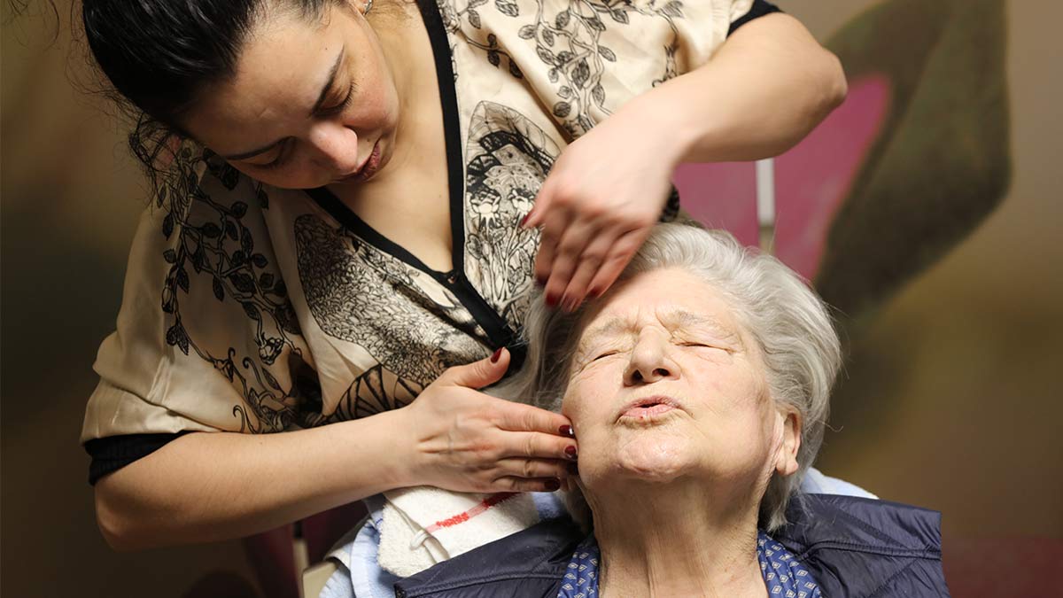 Nach soviel Aufregung war im „Haus Friedrich Ludwig Jahn“ dann Wellness angesagt. Die Mitarbeiter*innen luden zum Entspannen ein und hatten eine wahre Wellnessoase eingerichtet. Eine entspannende Deko, dazu Häppchen und ein Gläschen Sekt – da lässt es sich aushalten. Das dachten auch besonders die Seniorinnen, die sich bei einer Gesichtsmassage , Maske oder einer Maniküre verwöhnen und schick machen ließen.