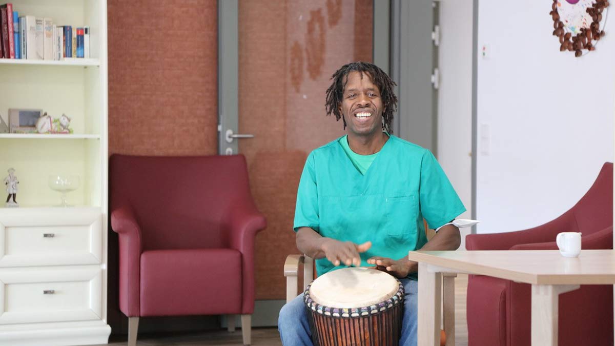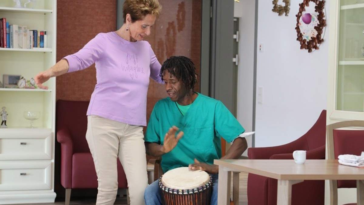 Die Fastnachtszeit war anstrengend, auch für die Senior*innen. Es wurde viel gefeiert und gelacht und getanzt und getrommelt. Ja, getrommelt. Im „Haus Friedrich Ludwig Jahn“ begeisterte im Aufenthaltsbereich mit seinen Rhythmen. Während ein paar Bewohner*innen sich im Bürgerhaus Dudweiler vergnügten, ließen die anderen auf dem Wohnbereich die Puppen tanzen. Und nicht nur die Puppen, der ein*e Mitarbeiter*in oder die andere Senior*in schwangen ebenso das Tanzbein.