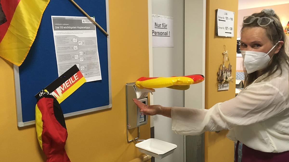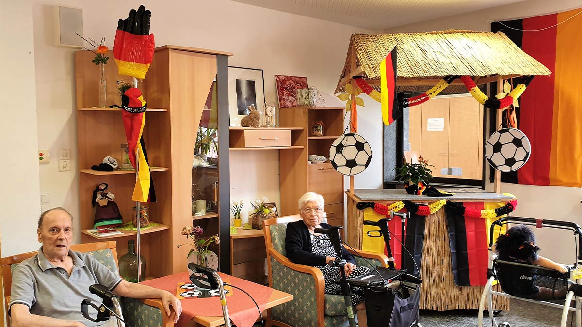 Besucher von „Haus St. Katharina“ werden sich momentan wohl erstaunt die Augen reiben. Haben sich doch die Wohnbereiche der Einrichtung in eine Fan-Meile verwandelt. Das EM-Fieber ist ausgebrochen unter den Bewohner*innen und Mitarbeiter*innen. Und der Fan-Eifer ist groß!