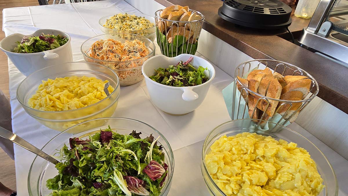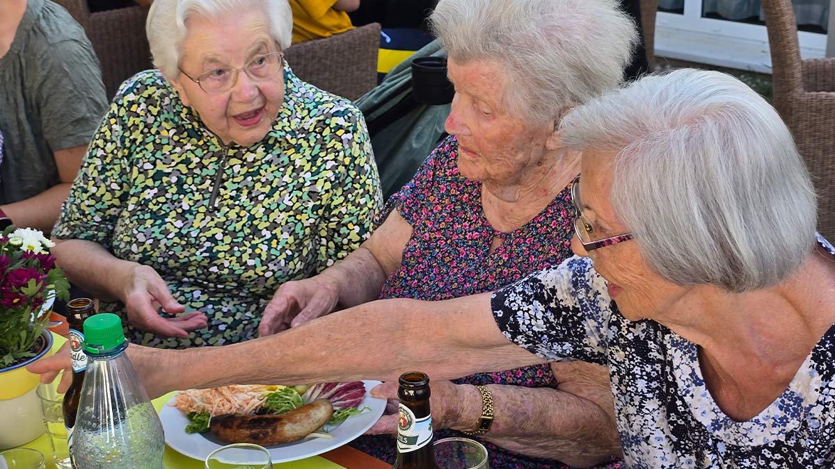 Angehörigenabende sind im „Haus Taubergießen“ keine Seltenheit. Regelmäßig werden die Angehörigen aktiv von der Einrichtung dazu eingeladen, einen schönen Abend gemeinsam mit den Bewohner*innen zu verbringen. Im Sommer bietet sich da eine etwas andere Art an. So wurde in Kappel-Grafenhausen nun schon zum wiederholten Mal ein gemeinsames Grillen veranstaltet. Viele Angehörigen waren der Einladung gefolgt und nutzten die Gelegenheit, mit ihren Liebsten, den anderen Senior*innen und Angehörigen sowie dem Pflegeteam ins Gespräch zu kommen. Einrichtungsleitung Kerstin Stingl begrüßte offiziell die Gäste und eröffnete das Gripp- und Salatbuffet. Ernst & Elke sorgten mit der Quetschkomod für die musikalische Begleitung. Bei bestem Wetter mit guter Laune wurde so Mitte Juli ein schöner Abend verbracht, bei dem viel gesungen, gelacht und sogar getanzt wurde.
