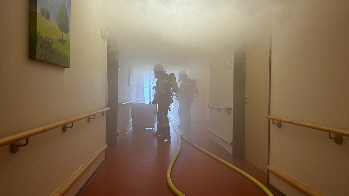 Die Übung fand in einem der besonders zu beobachtenden Objekten der Gemeinde statt. Im „Haus Hubwald“ des Schwesternverbandes leben rund 180 Bewohner*innen. Ziel der groß angelegten Übung war es, die Prozessabläufe im Falle eines Brandes in der Einrichtung durch das Personal in Zusammenarbeit mit der Feuerwehr zu üben und zu optimieren.
