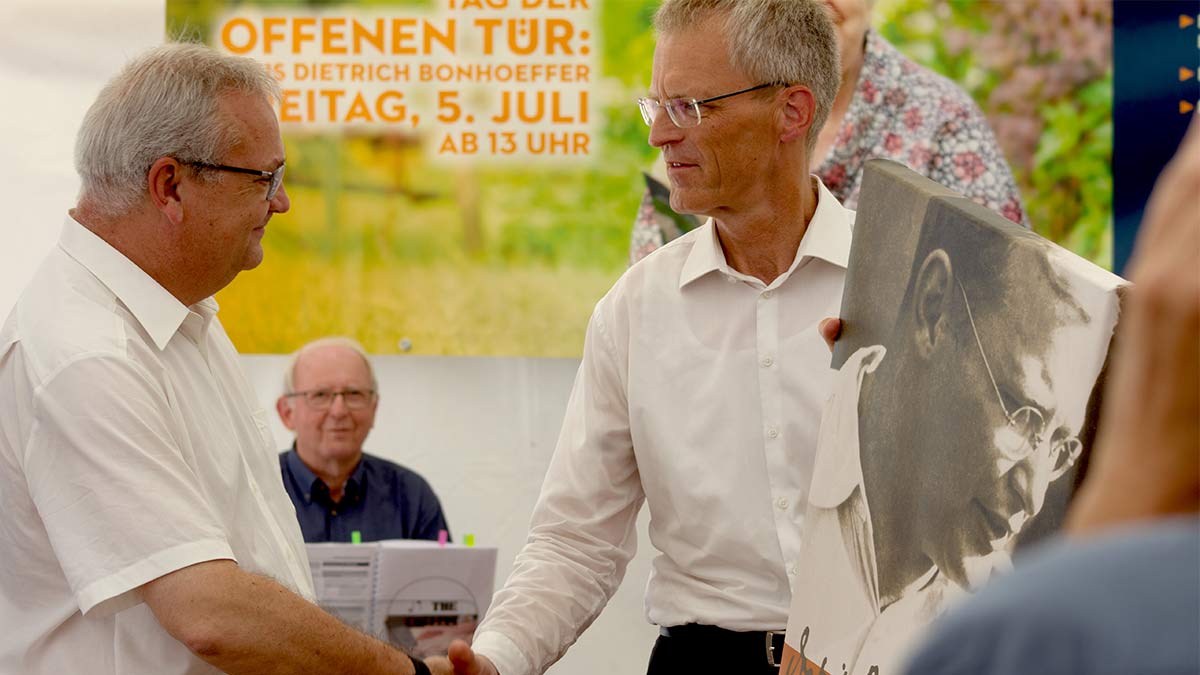 Anfang April wurde die neue Pflegeeinrichtung nach nur einem Jahr Bauzeit fertiggestellt und zu Beginn des Monats zogen die ersten Bewohner*innen ein. Anlässlich der Neueröffnung überreichte der Vorstandsvorsitzende Thomas Dane ein Präsent an Einrichtungsleiter Klaus-Peter Penno: ein großes Portrait des Namengebers der neuen Einrichtung. Dietrich Bonhoeffer war ein Theologe, der für seine Grundsätze Leben und Freiheit – Spiritualität und Sachlichkeit einstand. Ebenso wurde er als Widerstandskämpfer gegen den Nationalsozialismus bekannt.