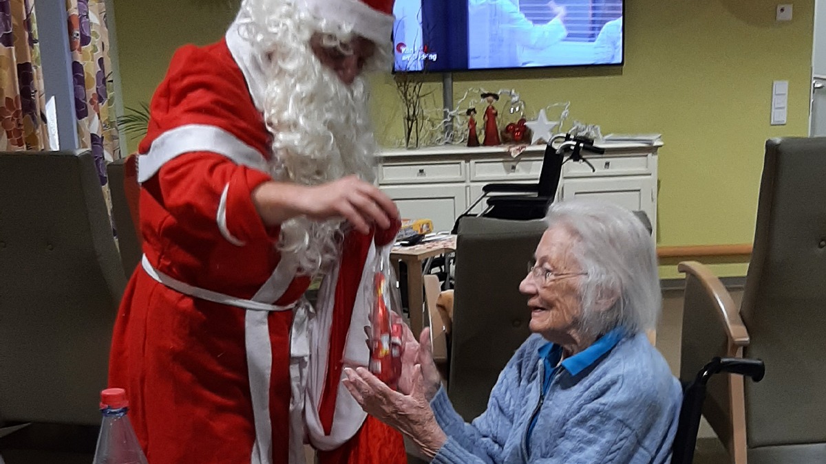 Für die Bewohner*innen des „Haus am Ringwall“ wurde Pflegefachkraft Stefan Einloft mal eben schnell zum heiligen St. Nikolaus. Das Team der Sozialen Betreuung sorgte dabei für leckere Verpflegung und ein musikalisches Rahmenprogramm. So hatte man dank Lebkuchen, Weihnachtsplätzchen und Punsch nicht nur einen vollen Magen, sondern vor allem auch eine besonders schöne Zeit. Selbstverständlich gab es vom Nikolaus auch noch kleine Geschenke. Die Bewohner*innen in Otzenhausen freuten sich sehr und wir uns gleich mit ihnen.