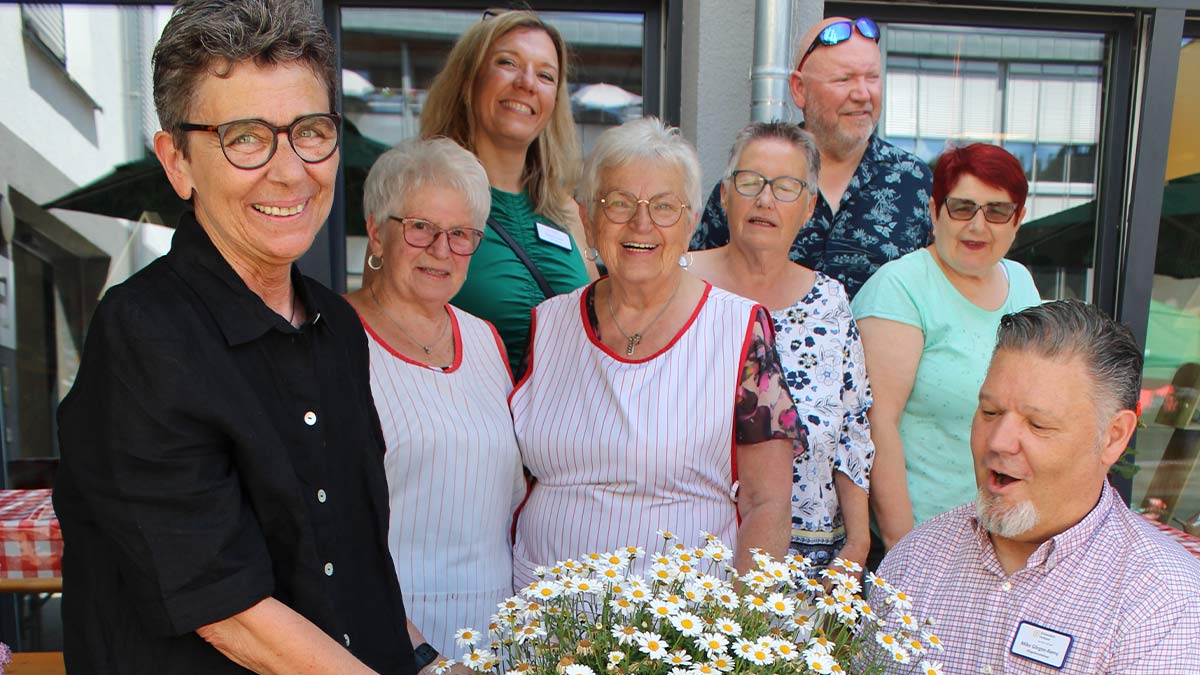 Zu Beginn des Tages hatten die Presbyterinnen der Evangelischen Kirchengemeinde in Zusammenarbeit mit Pfarrer i.R. Erhard Kern und dem Bewohner*innenchor „Liedscha unn soo“ einen Wortgottesdienst für die Bewohner*innen vorbereitet. Zum Mittagessen gab es große Auswahl – generell konnte sich die Kulinarik sehen lassen: Melitta Daschner und ihr Kreis der Ehrenamtlichen hatten wieder gebacken. Die Kuchen, Torten und Speckwaffeln führten zu Gaumenfreuden. Die verschiedenen Wohnbereiche sorgten für den Rest der Köstlichkeiten. Jeder Wohnbereich hatte etwas anderes vorbereitet und angeboten: Es gab Würstchen, Pommes, Sandwiches, Hot Dogs und kühlendes Eis. Soviel zum Essen – das Programm konnte sich aber erst recht sehen lassen: Der/die Mitarbeiter*in Thomas Kunz und Karin Gaes begeisterten mit einem Puppentheater-Auftritt und dem Stück „Die Raupe Nimmersatt“ und verteilten erfrischende Melonenstücke an die Zuschauer. Auch der hausinterne Tagesförderbereich trug mit einem vielfältigen Aktionsangebot zum Gelingen bei. Es wurde Luftballonkunst und Glücksrad angeboten, mit einer Farbtrommel konnten die Besucher*innen tolle farbliche Kreationen verwirklichen und Kinder konnten sich über zauberhaft geschminkte Gesichter freuen. Ein Drehorgelspieler sorgte für richtiges Jahrmarktsflair. Erhard Kern begleitete mit seiner Gitarre nicht nur den Auftritt des Bewohner*innen-Chors „Liedcha unn so“, am Nachmittag sondern begeisterte auch mit einem Soloprogramm, bei dem er Songs der Beatles in saarländischer Mundart wiedergab. Zum Tanzen lud die Rentnerband Ottweiler zum krönenden musikalischen Abschluss ein. Alles in allem war es ein gelungenes Fest, was besonders die Bewohner*innen so schnell nicht vergessen werden. Allen Helfer*innen, die das Fest haben so großartig werden lassen, allen Mitarbeiter*innen, Ehrenamtlichen und und und ein herzliches Dankeschön!