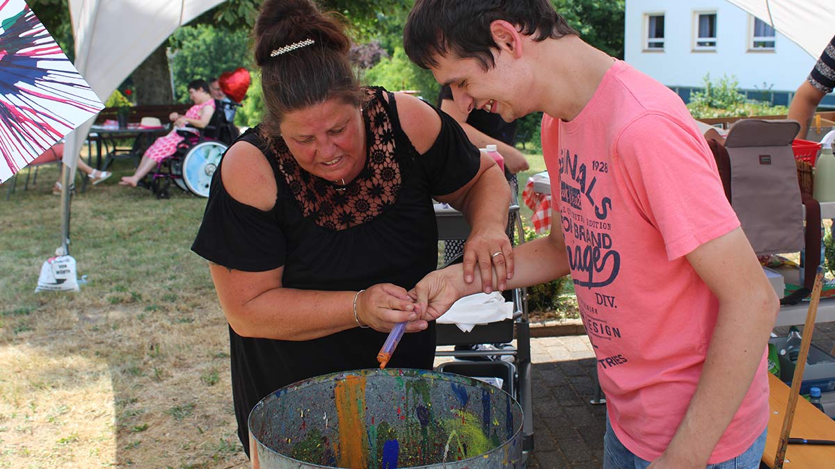 In den „Häusern im Eichenwäldchen“ in Ottweiler wurde gefeiert – mit Bewohner*innen, Angehörigen, Mitarbeiter*innen, Ehrenamtlichen und Freund*innen der Einrichtung. Es war ein großes Spektakel, endlich wieder – besonders die Bewohner*innen hatten sich nach der Corona-bedingten Fest-Pause sehr darauf gefreut. Das Sommerevent sollte ein ganz besonderes werden und das wurde es. Ein bunter Jahrmarkt, der auf zwei Ebenen des Eichenwäldchen-Geländes veranstaltet wurde, wurde rege angenommen und versprühte ein ganz besonderes Flair.