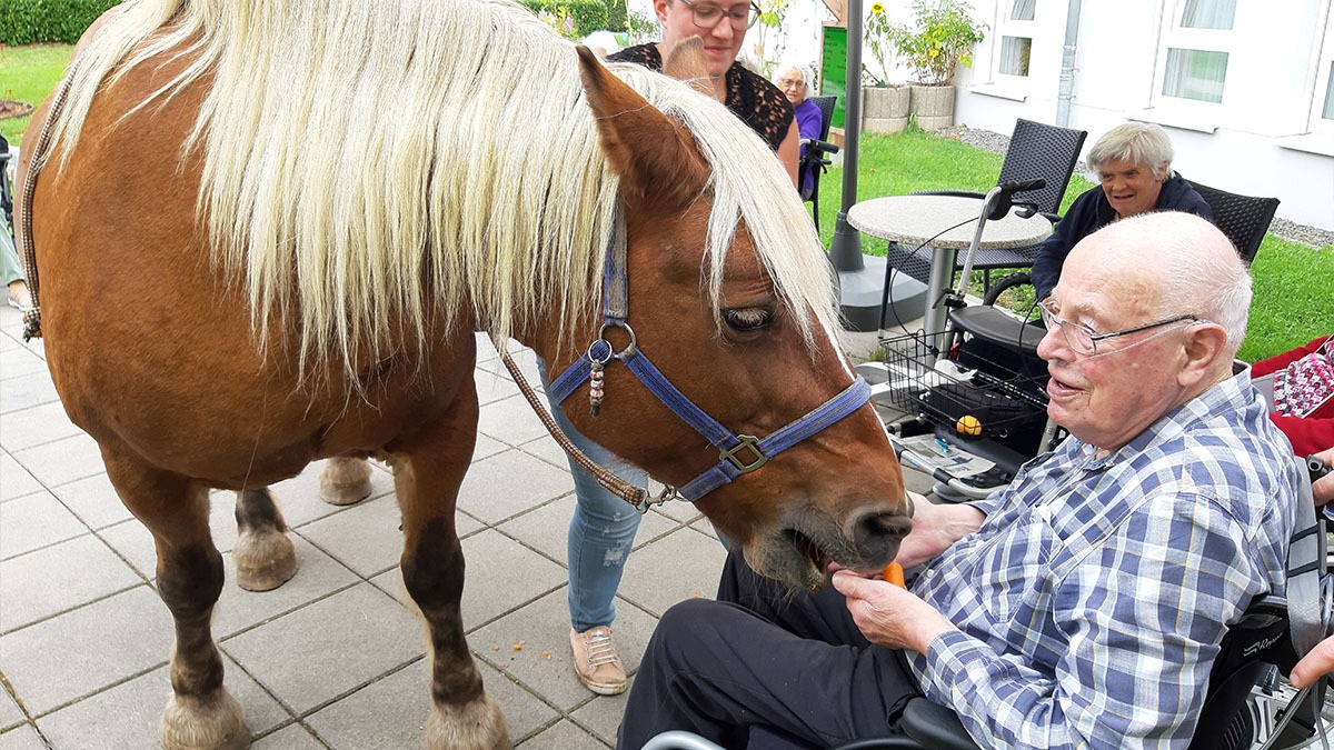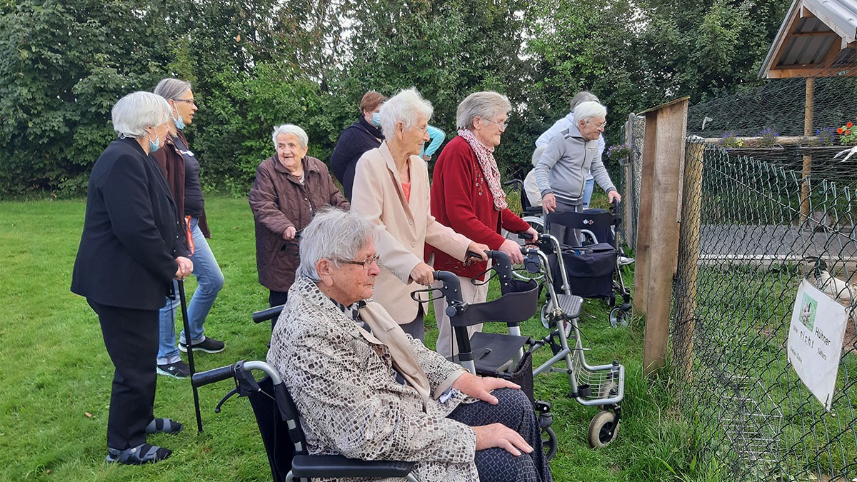 Das Landleben ist ein schönes Leben. Das sehen zumindest viele Menschen so. Genauso auch das in der schönen Eifel-Landschaft gelegene „Haus Luzia“ in Manderscheid. Denn für Mitarbeiter*innen und Bewohner*innen war der September ein sogenannter „Motto-Monat“ mit dem Thema „Landleben“. Unter anderem wurde die Einrichtung von zwei Pferden besucht, die für viel Spaß und Freude sorgten. In Bleckhausen besuchten interessierte Bewohner*innnen die dort lebenden Dorfhühner und damit auch die Familien Dostal und Delsing, die ehrenamtlich in der Pflegeeinrichtung tätig sind. Eine Woche später stattete eine Senioren-Gruppe dem Bauernhof der Familie Becker einen Besuch ab. Die viel eingeatmete Landluft wirkte sich auf alle Beteiligten positiv aus, sodass Unternehmungen dieser Art nun definitiv regelmäßiger geplant werden.