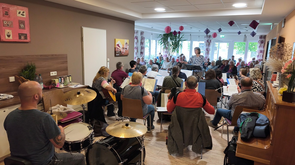 Vor kurzem erlebten die Bewohner*innen des „Haus im Glantal“ ein besonderes musikalisches Highlight, welches sich selbst die Besucher*innen nicht entgehen ließen. Das „Gumbsweiler Mandolinen Orchester“ sorgte für stimmungsvolle Musik und eine ausgelassene Stimmung. Viele Senior*innen sangen mit, klatschten im Takt, schunkelten fröhlich und wagten sogar einige Tanzschritte. Die Energie und Begeisterung des Mandolinenorchesters übertrug sich direkt auf die Zuhörenden. „Musik ist die beste Medizin. Sie tut dem Herzen gut“, schwärmte eine Bewohnerin während der Veranstaltung.