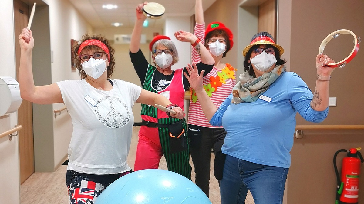 Dieses Jahr fand kein großes Treiben zu den bunten Tagen statt. Spaß hatten die Bewohner*innen des „Haus im Glantal“ in Altenglan dennoch! In Kleinstgruppen wurde zusammen Faschingsmusik gehört und Leckereien wie das Getränk „Blonder Engel“ und leckere Berliner mit feiner Marmelade genossen. Mit guter Laune und Heiterkeit unterhielten sich die Senior*innen am Rosenmontag auch angeregt darüber, wie sie früher die Faschingszeit verbracht haben. Da wurden viele tolle Anekdoten erzählt. Am Faschingsdienstag wurde ein Karnevalmusikumzug durchs Haus gestartet. Mit Musikinstrumenten, Lautsprecher und Musik wurde auf den einzelnen Wohnbereichen gute Stimmung verbreitet. Manche BW übernahmen sogar für kurze Zeit das ein oder andere Musikinstrument und machten mit. Tolle Aktionen, die für Abwechslung und viel Freude sorgte.